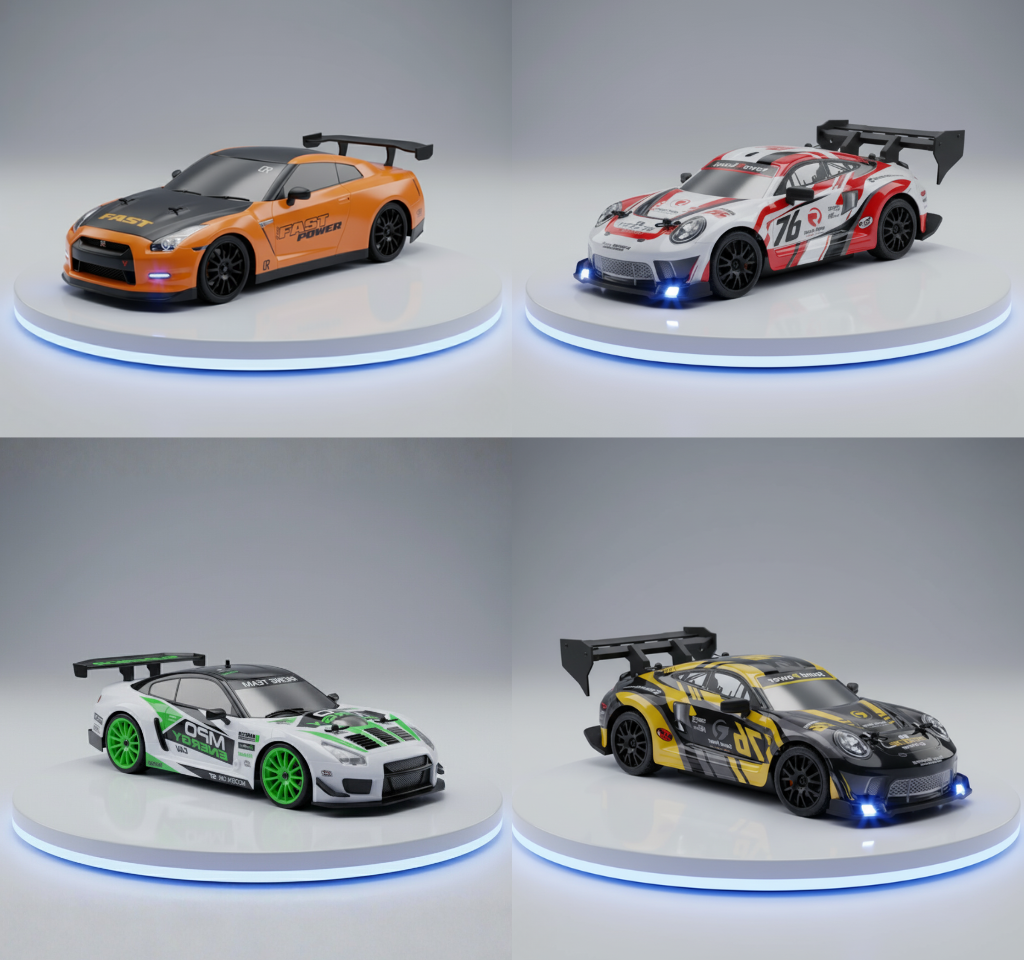 Master two driving styles with a single car. This chassis transforms easily by changing the included tyres. Drift Mode: Install the smooth plastic tyres to slide sideways, control oversteer and draw perfect figure eights. Grip Mode: Fit the high-performance rubber tyres for total traction, high-speed cornering and brutal acceleration. From artistic precision to extreme grip in an instant. What will you choose today?